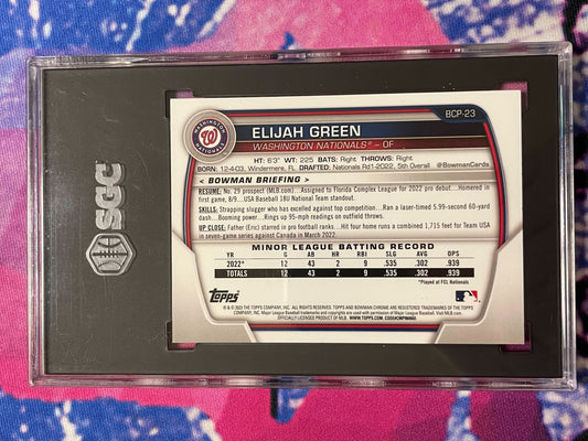 2023 Bowman Chrome Prospect Elijah Green Yellow Refractor 1/75 SGC 9.5